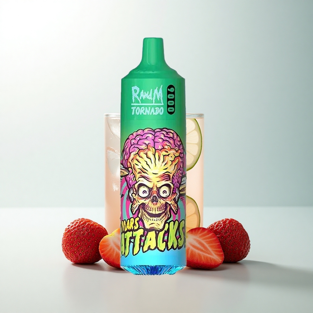 RandM Fumot Tornado 9000 Puffs Fraise Citronnée avec Affichage RGB et Bobine Mesh