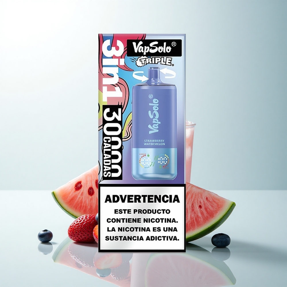 Vapsolo Triple 30000 Puffs Fraise Pastèque & Myrtille Glacée avec 40ml et Type-C