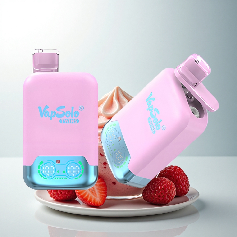 Vapsolo Twins 20000 Puffs Dragon Fruit Fraise & Framboise Pastèque Glace Noire avec 40 ml et Port Type-C
